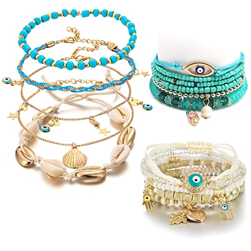KBJUH Cavigliera Donna Colorata Cavigliere Donna 17 Pezzi Cavigliera Perline Cavigliere Donna Cavigliere Con Perline Dorate Ciondolo Conchiglia Estiva Braccialetto Alla Caviglia Boho