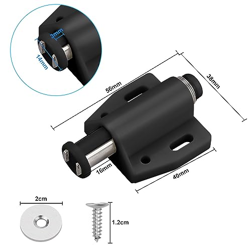 Set di chiusure magnetiche: riceverai 10 chiusure magnetiche nere per aprire, la dimensione della chiusura magnetica è di 55 x 40 mm, il pezzo lungo è di 34 x 12 mm, il chiudiporta ha una grande base con quattro fori e l'effetto di fissaggio è buono. Il fermo è dotato di una chiusura magnetica che garantisce una tenuta forte e affidabile, evitando l'apertura accidentale o lo sbattere delle porte.