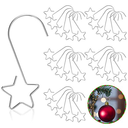 【Riutilizzabile】Un totale di 36 ganci per sfera a forma di stella, dimensioni 2 x 5.5 cm, argento, gancio per il fissaggio a forma di stella per uso universale per decorazioni natalizie. dopo le vacanze, il gancio per palline può essere semplicemente rimosso e riutilizzato.