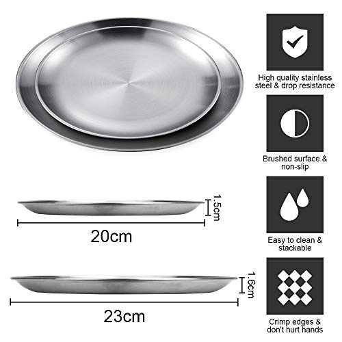 KBNIAN 2 Pz Piatti Acciaio Inox Piatti Campeggio 20 cm/ 23 cm Piatti Picnic Rotondi in Acciaio Inox Piatti Resistente e Facile da Lavare per Campeggio all'Aperto, Picnic, BBQ, Spiaggia (Argente)