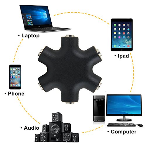 Adattatore splitter audio jack per cuffie: jack stereo da 3.5 mm ideale per tutti i 3.5 mm Adapter, si divide in cinque porte di condividere la musica con gli amici