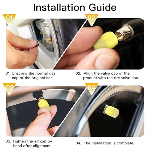 【Installazione semplice】 Installazione semplice senza strumenti. Basta avvitare lo stelo della valvola del pneumatico. È facile da installare o rimuovere quando si desidera controllare la pressione dell'aria.