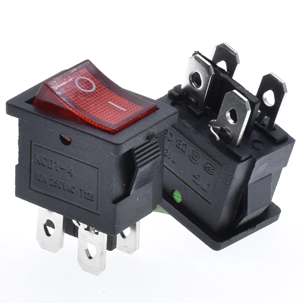 5PCS KCD1-4 4 Pin 21*15mm ON-OFF Boat Car Rocker Switch 6A/250V AC 10A/125V AC Red light green light With Led Light good quality