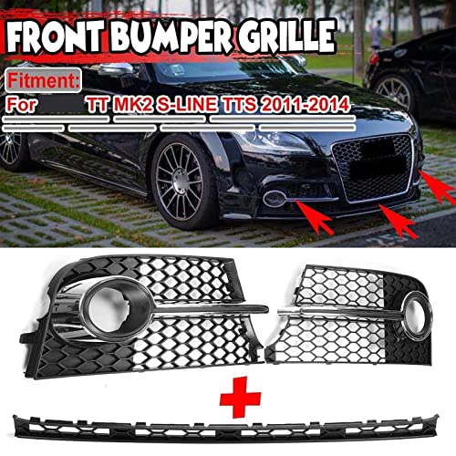 KCSOC Hicecomb Hex. Automobile Anteriore Fendinebbia Grille Grill Grille + Griglia Centrale Inferiore Adatta for Audi TT MK2 S-Line TTS 2012 2013 2013 2014 (Color: Silver)