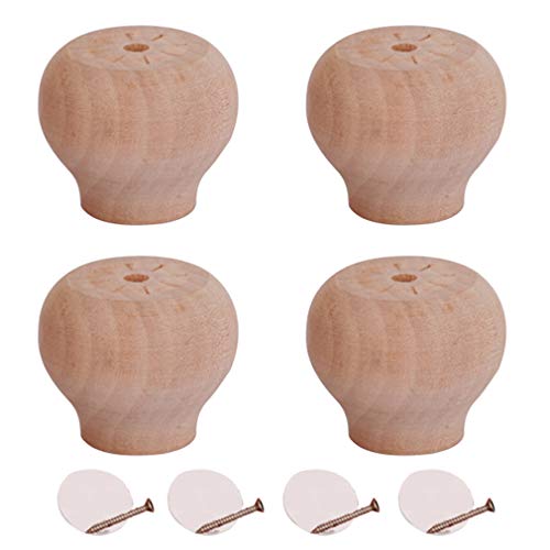 KDDEON Gambe per Mobili Rotonde in Legno Massello,Gamba Divano,Piede per Armadio,Piedini di Appoggio,Gambe di Ricambio per Scrivania per Computer,con Viti e Biadesivo,Set di 4 (1.6in/4cm,Wood color)