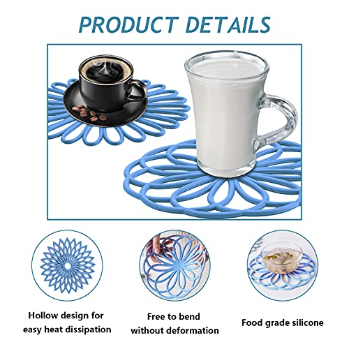 KDWOA Sottopentola a Forma di Fiore, 3 Pezzi Sottopentola in Silicone, Antiscivolo Tappetino Sottopentola, Multifunzione(Blu)