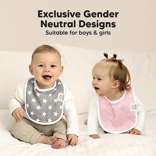 Super assorbente - I nostri eleganti bavaglini organici per neonati sono realizzati in cotone organico al 100% (certificato GOTS) e sono foderati con pile idrorepellente per un maggiore assorbimento. Questo design a due strati manterrà i vestiti del tuo bambino puliti e freschi tutto il giorno, il che significa meno bucato per te! Adatto a neonati, bambini piccoli, con problemi di dentizione e sbavando.