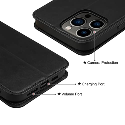 Keallce Custodia per iPhone 14 Pro Max, iPhone 14 Pro Max, in pelle, iPhone 14 Pro Max, custodia a portafoglio in pelle PU, compatibile con iPhone 14 Pro Max, in pelle da 6,7", colore: nero