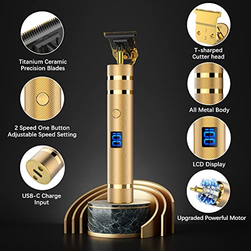 【Lama a T in Ceramica di Titanio】 Tagliacapelli da uomo realizzato con testa di taglio in ceramica di titanio a forma di T, resta affilato per un taglio confortevole. Design della testa dell'olio a distanza zero: testa di taglio tipo T 0 mm adatta per tagliare, rifinire, intagliare la forma dei capelli e la testa calva, l'angolo ottuso a forma di R 360 non danneggia il cuoio capelluto.