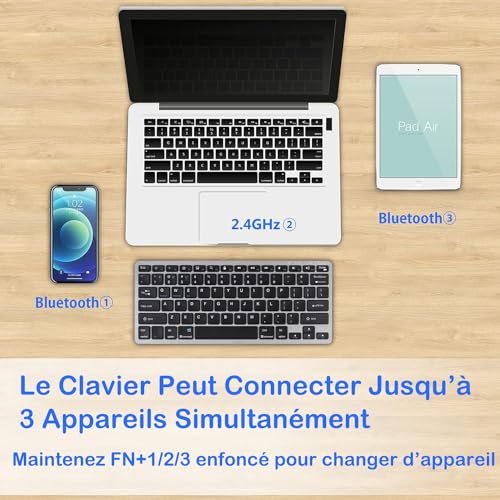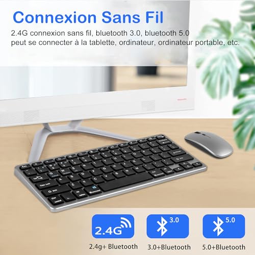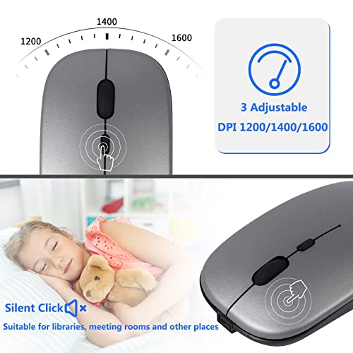KeautFair Tastiera Mouse senza fili, Connessione 2.4G, Ultra-Sottile Compatta Tastiera, Portatile Silenziatore DPI Regolabile USB Bluetooth Tastiera Mouse per PC/Laptop/Windows/Mac-Grigio