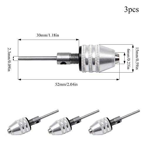 【Dimensioni e quantità】 3 pezzi di argento mandrino per avvitatore, gamma di serraggio: trapano a gambo rotondo ultrafine da 0,3-3,4 mm.