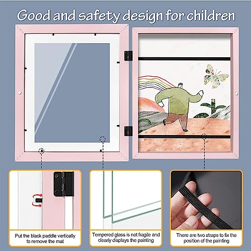 KECRULV Cornice portafoto per disegni per bambini, apertura frontale, formato A4, per bambini, modificabile, per esporre o appendere le opere d'arte dei vostri bambini, con 5 immagini graffiate A4