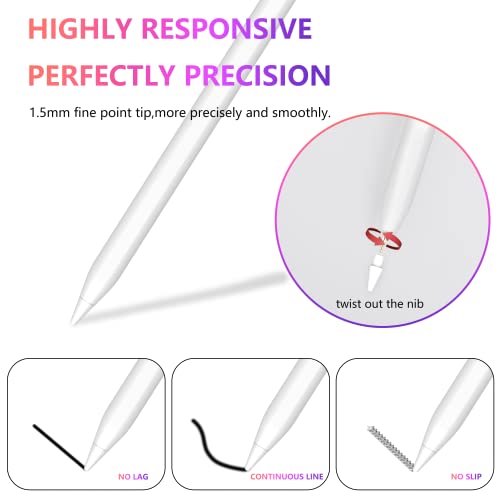 [Rifiuto del palmo e attacco magnetico]: con la funzione di rifiuto del palmo, il tuo iPad riconosce solo la punta della penna stilo e non la mano o il dito, consentendo di scrivere o disegnare comodamente. E presenta un bordo piatto che si attacca magneticamente al tuo iPad.