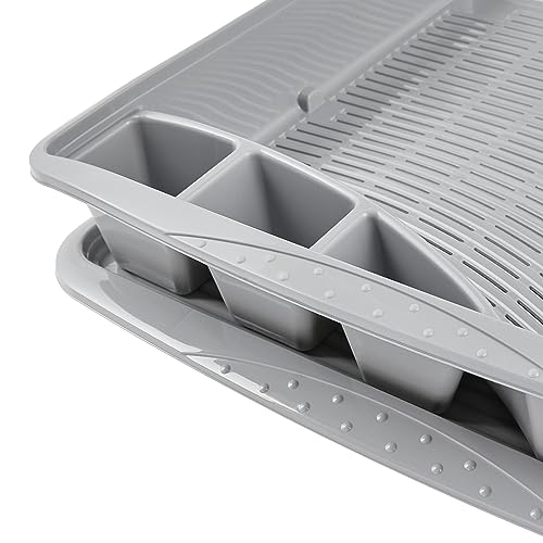 keeeper scolapiatti con vassoio, plastica senza BPA, 39,5 x 39,5 x 8 cm, Pierre, grigio nordico