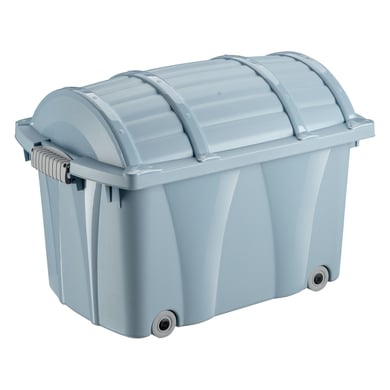 Dettagli del prodotto: Volume: 49 litri Scatola dei pirati blu con design a forziere Grande scatola per riporre bambole, blocchi da costruzione e altri giocattoli Con ruote per un facile trasporto e clip per una facile chiusura della scatola Materiale e cura: Materiale: PP Dimensioni e peso: Dimensioni (lunghezza x larghezza x altezza): 58 x 37 x 40 cm