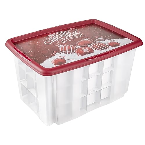Contenuto: 1 Contenitore a tema natalizio con coperchio, Include inserto in cartone per 45 palline natalizie, Wika, 10534, Dimensioni (LxPxA): 55 x 39,5 x 29,5 cm, Capacità: 45 L, Rosso