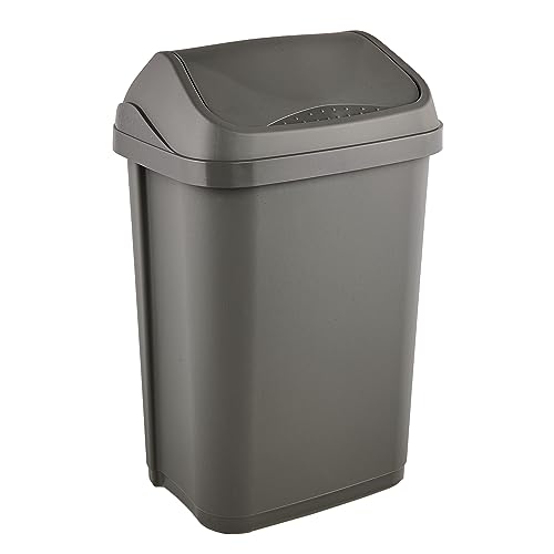 Keeeper Eco Swantje Pattumiera con coperchio basculante, 25 l, in plastica riciclata, grigio, 33,5 x 25,5 x 53,5 cm