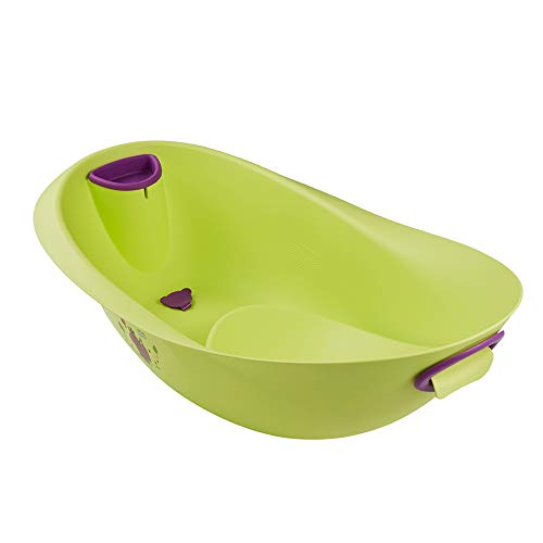 Keeeper Vaschetta da Bagno Ergonomica Hippo per Bambini, con Morbida Impugnatura, Tappo e Seggiolino Anatomico, Da 0 a 6 Mesi circa, Natalia, Verde