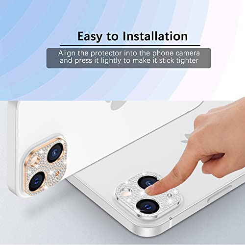 KeeFos Bling Pellicola Fotocamera Compatibile con iPhone 13, [2 Pezzi] [Case friendly] [Anti-graffio] Diamante Strass Protezione Fotocamera cover per iPhone 13 (D'argento+Oro rosa)