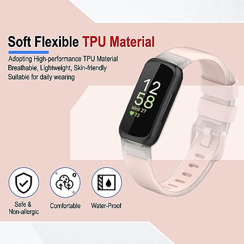 KeeFos Cinturino Compatibile con Fitbit Inspire 3, Uomini Donne Trasparente Morbido TPU Cinturino di Ricambio per Fitbit Inspire 3 - Rosa