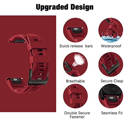 KeeFos 22 mm Cinturino Compatibile con Garmin Fenix 7/Fenix 6/Fenix 6 Pro/Fenix 5/Fenix 5 Plus, Silicone Morbido Cinturino di Ricambio per Forerunner 935/945/Epix Gen 2 (Rosso)