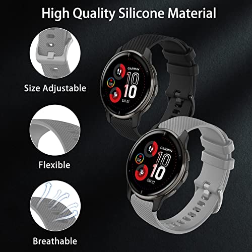 KeeFos [2 Pezzi 20MM Cinturino Compatibile con Garmin Venu Sq 2/Venu Sq 2 Music/Venu 2 Plus/Forerunner 158, Silicone Morbido Regolabile Cinturino per Garmin Venu/Venu Sq/Sq Music - Nero+Grigio