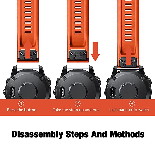 KeeFos 26mm QuickFit Cinturino Compatibile con Garmin Fenix 7X/Fenix 6X/Fenix 6X Pro/Fenix 5X/Fenix 5X Plus, Silicone Morbido Cinturino di Ricambio per Garmin Fenix 3/Fenix 3 HR (Arancia)