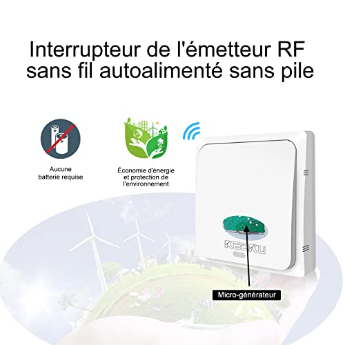 KEEKU Interruttore Luce Senza Fili, Trasmettitore RF e Controllo Ricevitore, Interruttore Wireless Sicurezza, Telecomando Elettricità Autoprodotta Senza Batteria Interruttore per Apparecchi (Piazza)