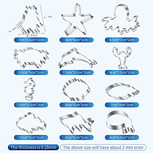 KEELYY Formine per Biscotti -12 Pezzi Stampi per Biscotti Ocean Creature in Acciaio Inox Formine Biscotti di Varie Forme, per Bambini DIY Decorazioni Dolci, Biscotti Caramelle, Festa di Compleanno