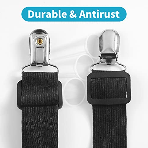 KEELYY Clip Lenzuola, 8 Pezzi(15cm-100cm) Bretelle Elasticizzate Regolabili, Cinghie Elastici con Clip in Metallo per Fissaggio Angoli Lenzuola, coprimaterassi, Letto o Divano - Nero