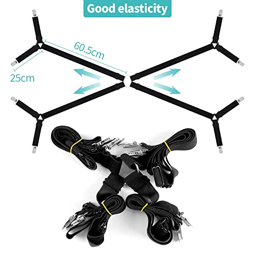 KEELYY Clip Lenzuola Regolabile su 4 Lati, Tenditore per Lenzuola con Clip in Metallo, Elastico Bretelle Criss Cross per Fissaggio Angoli Lenzuola, coprimaterassi, Letto o Divano