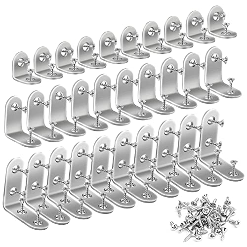 KEELYY 30 Pezzi Staffe Angolari a forma di L, Squadrette Angolari 90 Gradi 40 x 40/30 x 30/20 x 20, Supporti Angolo Retto in Acciaio Inox con Viti per Tabelle, Sedie, librerie e Mobili in Legno