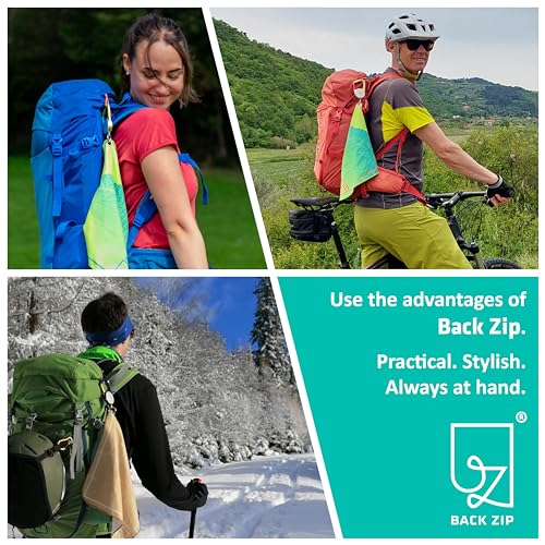 REGALO IDEALE: Il Back Zip è un accessorio pratico per l'escursione che può essere utilizzato in genere come panno antisudore per lo sport, come asciugamano da viaggio oppure da golf. Sorprendi i tuoi cari con un moschettone stiloso con foulard.