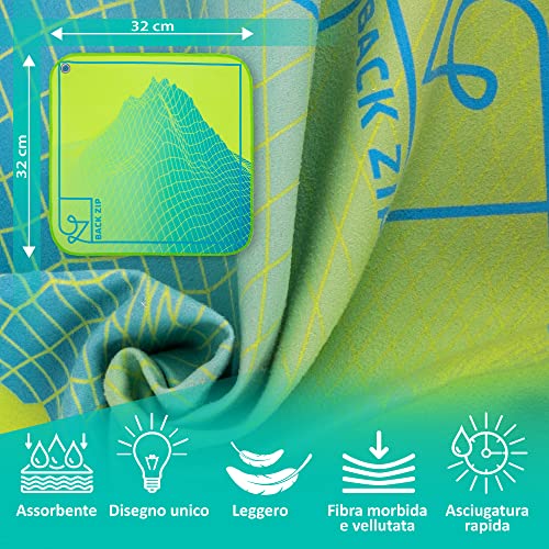 PRATICO DA USARE: Il moschettone Back Zip può essere agganciato ad ogni tipo di zaino ed il mini asciugamano in microfibra è sempre a portata di mano. L'asciugamano sportivo asciuga velocemente all'aria aperta e si hanno subito le mani libere.