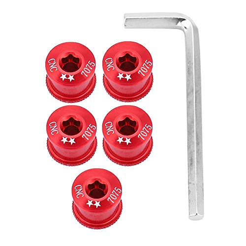Keenso Bulloni per Corona per Bicicletta, 5 Pezzi Bullone per Corona in Lega di Alluminio per Bici Bullone per Ruota per Bici Bulloni per Corona per Singola Doppia Tripla velocità(5mm 黑色-Rosso)
