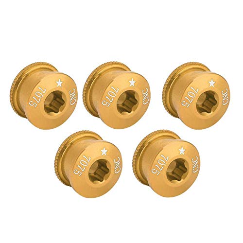 Keenso Bulloni per Ruota di Catena della Bici, 5 Pezzi Vite per Corona della Bici in Lega di Alluminio Bullone per Ruota di Catena della Bicicletta per Singola Doppia Tripla velocità(5mm-Oro)