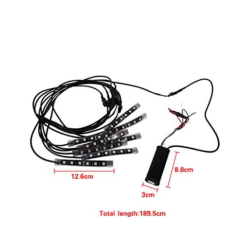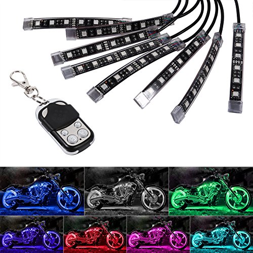12V 4A Set di 8 luci LED RGB, Keenso Kit RGB di Illuminazione e Decorazione per auto, moto e moto, multicolore con telecomando senza fili