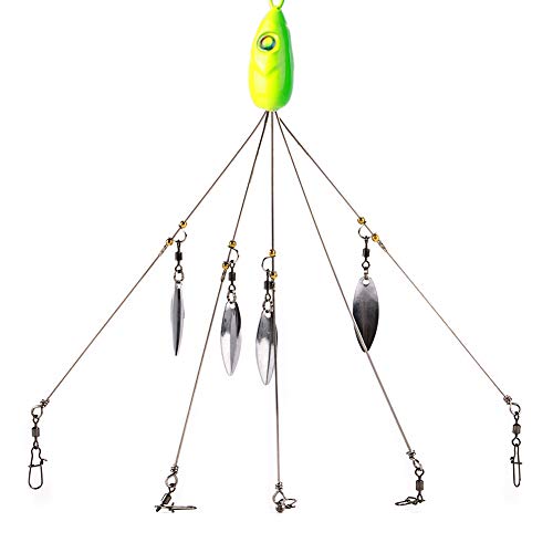 【5 GIREVOLI】 - Le nostre esche da pesca a ombrello sono dotate di 5 girelle, puoi usare 5 ami da pesca, flash di paillettes in metallo per attirare i pesci, che è portatile, importante supplemento allo strumento di pesca.