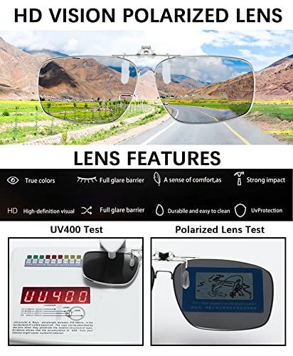 Long Keeper Clip Occhiali da Sole Polarizzati, Clip per Occhiali, Antiriflesso Flip up Lenti da Sole Sovrapponibili a Occhiali da Vista per Uomo Donna