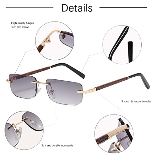 Stile rettangolo alla moda: la montatura dorata senza montatura e le delicate aste in metallo rendono gli occhiali da sole molto eleganti e con un senso di lusso. Il design semplice e compatto rende questi occhiali da sole vintage molto eleganti e raffinati.