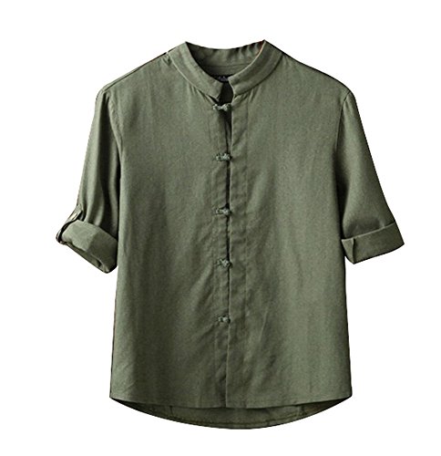 Keephen Camicia di Lino da Uomo, Classica Camicia Stile Cinese Kung Fu Top Tuta da Uomo 3/4 Manica di Lino