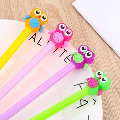 Keephic - 4 penne gel a sfera a forma di gufo, colore viola, verde, giallo, rosa, 0,5 mm, nero, penna a gel, penna a sfera per imparare e lavorare