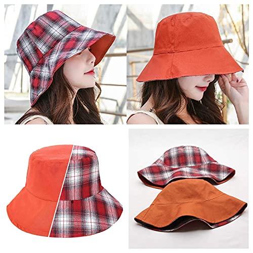KeepSa Cappello da Pescatore Donna Cotone Quadri Scozzesi Doppia Faccia Cappello Aecchiello Moda Cappelli Visiera Estivo Viaggio Arrampicata Shopping Giardino Campeggio