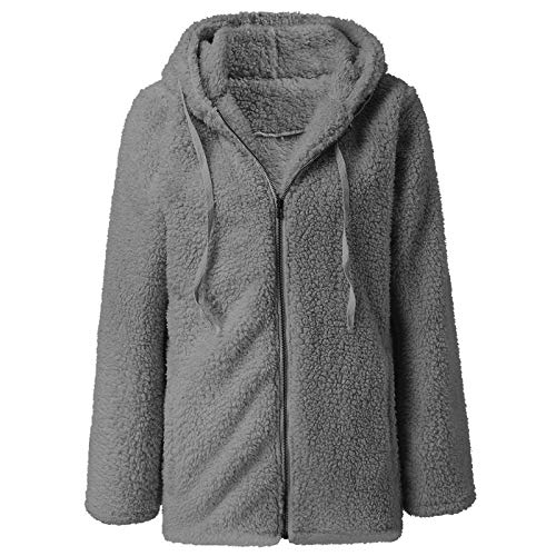KEERADS - Felpa in pile con cerniera e cappuccio per autunno invernali, con maniche lunghe, giacca in pile Casual, grigio, XXL