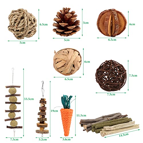 【Applicabilità e funzione】: il kit giocattolo da masticare è adatto per conigli, porcellini d'India, cincillà, criceti, gerbilli, ratti, uccelli, roditori e altri piccoli animali.