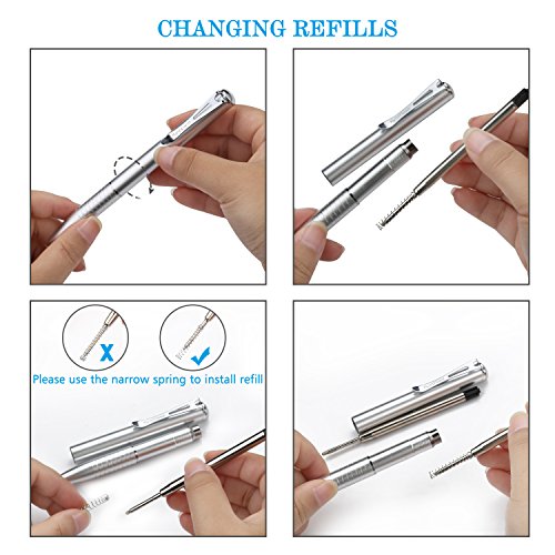 Nota per ricariche: se avete bisogno di sostituire che consumano a sfera e nuove, si prega di notare la larghezza della molla o utilizzare la sottile corretta modo, la nuova penna a sfera che in l' ingombro piuma viene utilizzata la presentazione dell' immagine, puoi vedere.