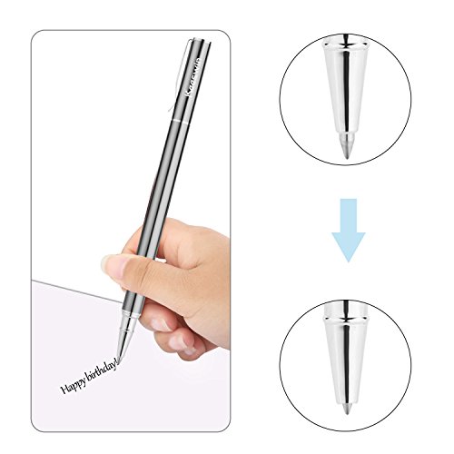 Caratteristiche: questa penna a sfera a lunga durata con molla e scrittura senso di gravità in metallo, evita danni da caduta.