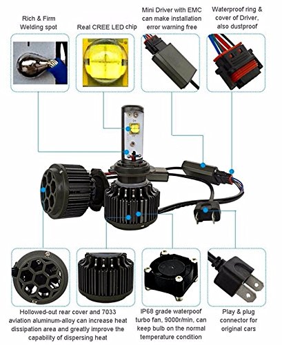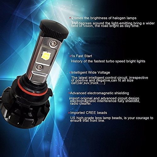 Luce bianca chiara 6000 K @ 7,200lm (3,600 lms per lampadina) illuminazione a led senza macchie scure. Top CREE LED MK-R led con 60 W per paio. Luce bianca fredda, 6000 k. 200% più luminoso dei tuoi fanali alogeni da stock.