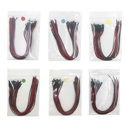 KeeYees 60Pcs 3mm LED Pre Cablati Diodi ad Emissione Luminosa DC12V - Bianco Caldo Bianco Rosso Blu Verde Giallo (10PcsX 6 Colori) + 60Pcs 3mm Supporto in Plastica del Diodo