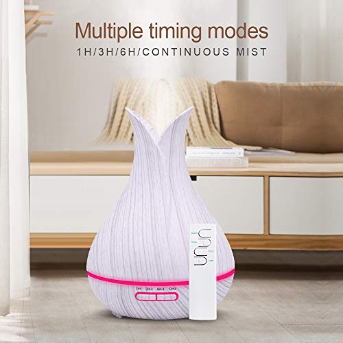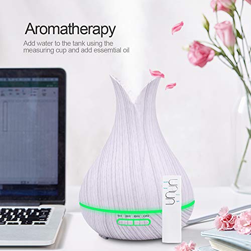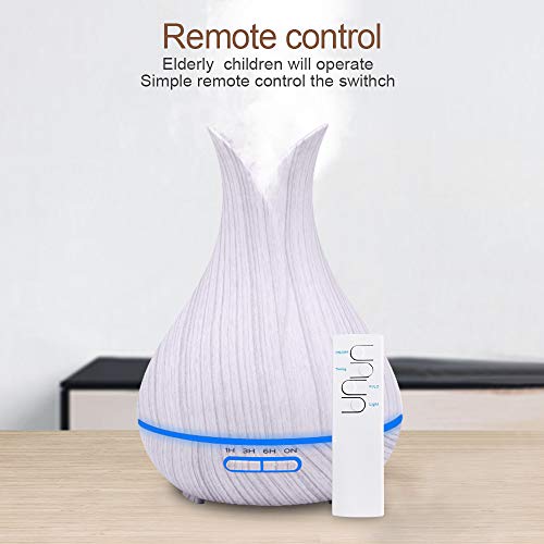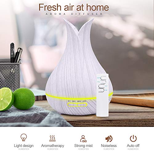 Keferer - Diffusore di oli essenziali per aromaterapia, a ultrasuoni, umidificatore d'aria, 400 ml, in legno bianco Telecomando bianco